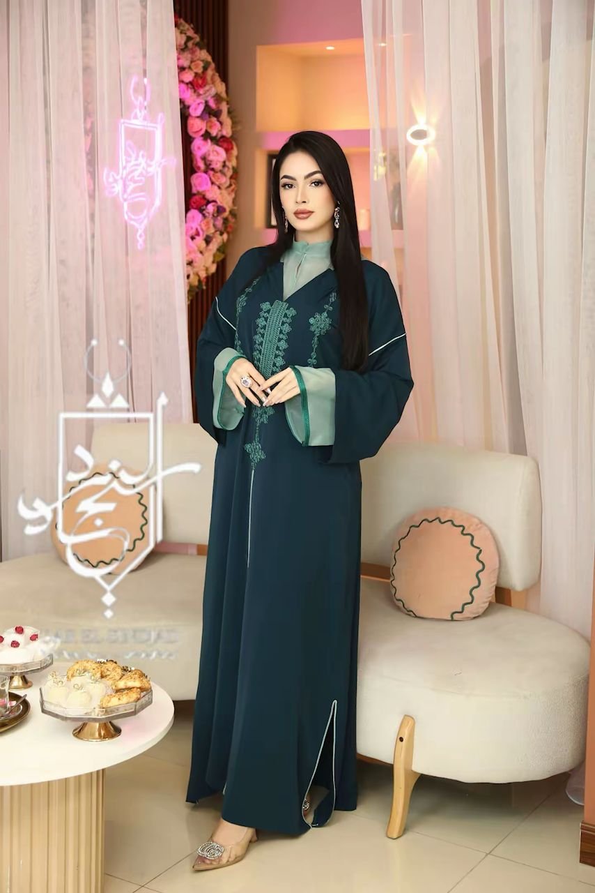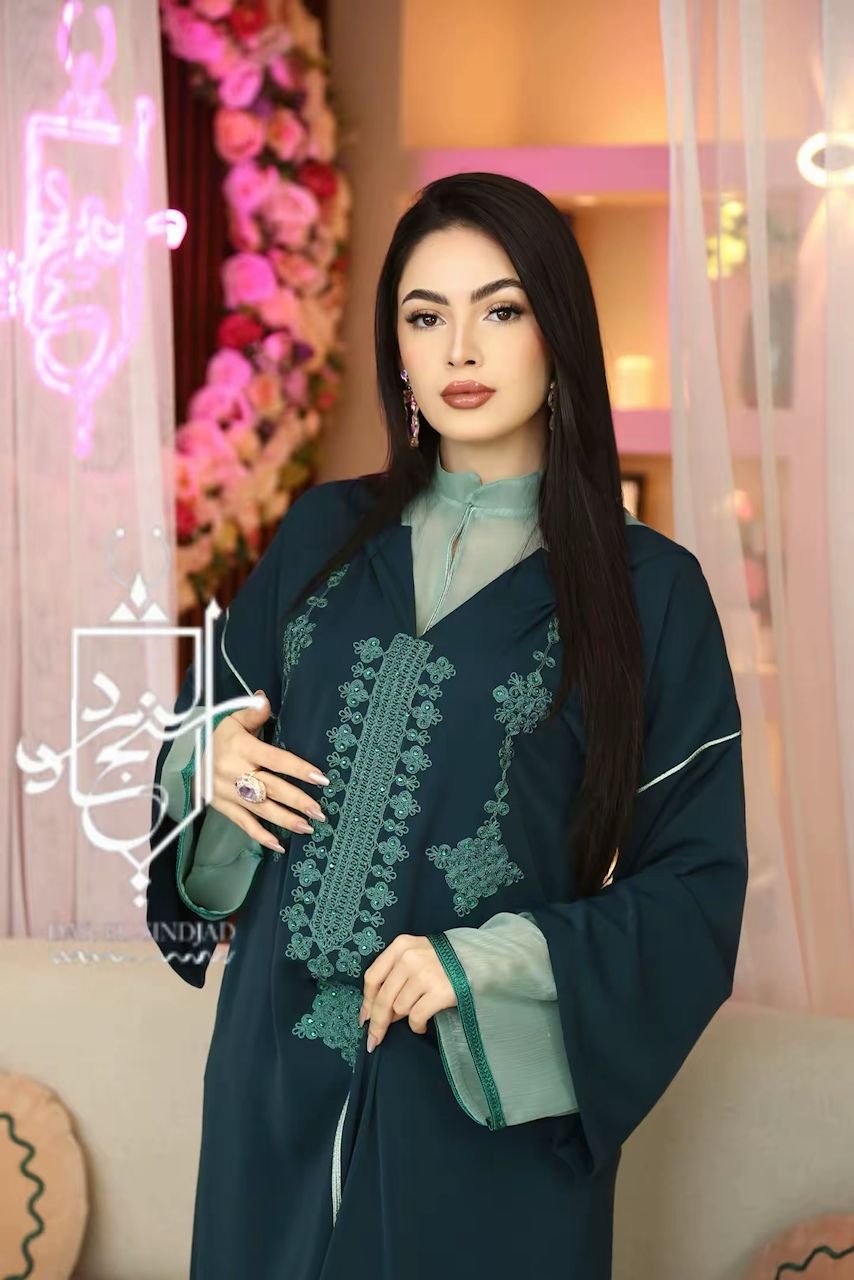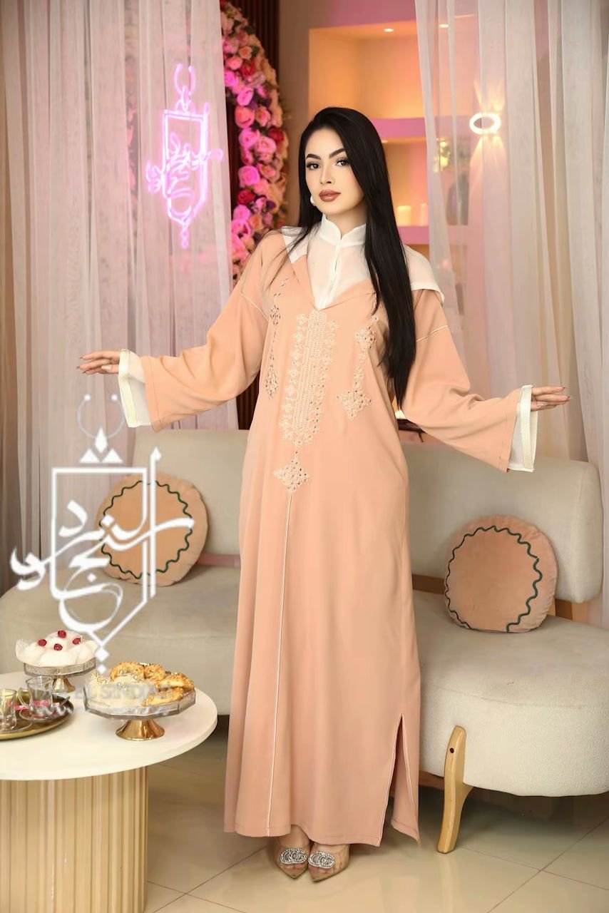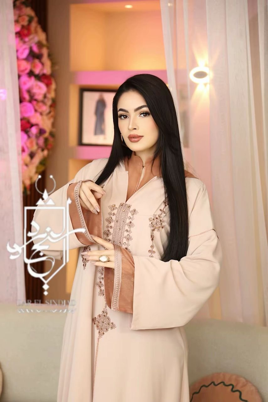 السمارة”جلابة متميزة مكونة من قطعة واح (قطعةً من الموسلين سيروم وقطعة من الكريب الناعم) مطرزة بخيط الفتلة الحريري